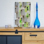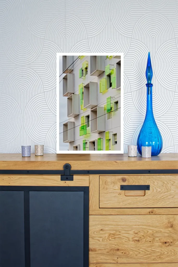 Un profil de suspension (ou châssis rentrant) en aluminium est proposé avec les tirages sur alu-dibond. Il donnera l’impression que la photo « flotte » sur le mur, ce profil fait entre 1,7 et 2 cm d’épaisseur (selon format du tirage). Il est positionné à l’arrière, à 10 cm des bords.