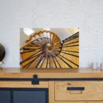 Un profil de suspension (ou châssis rentrant) en aluminium est proposé avec les tirages sur alu-dibond. Il donnera l’impression que la photo « flotte » sur le mur, ce profil fait entre 1,7 et 2 cm d’épaisseur (selon format du tirage). Il est positionné à l’arrière, à 10 cm des bords.