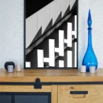 Un profil de suspension (ou châssis rentrant) en aluminium est proposé avec les tirages sur alu-dibond. Il donnera l’impression que la photo « flotte » sur le mur, ce profil fait entre 1,7 et 2 cm d’épaisseur (selon format du tirage). Il est positionné à l’arrière, à 10 cm des bords.