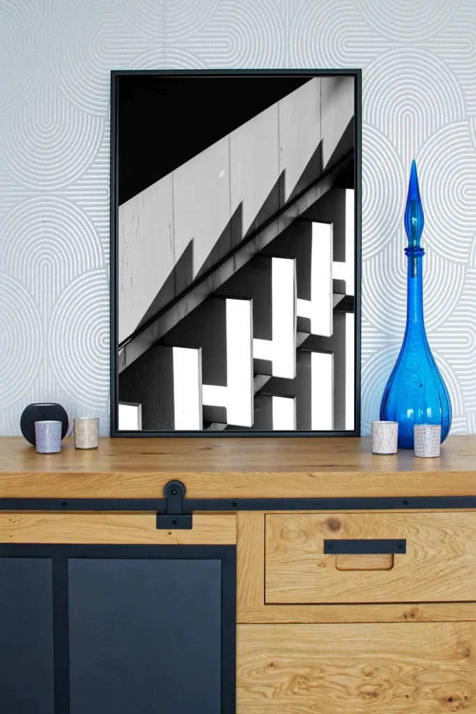 Je vous propose de sublimer le tirage avec un encadrement noir (en aluminium) de haute qualité, la caisse américaine. Un espace sépare le tirage du cadre pour un effet « flottant ». Cet encadrement vient ajouter environ 5 cm en largeur et 5 cm en hauteur au format total du tirage.
