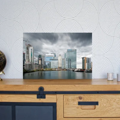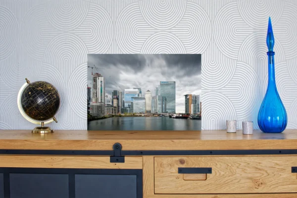 Un profil de suspension (ou châssis rentrant) en aluminium est proposé avec les tirages sur alu-dibond. Il donnera l’impression que la photo « flotte » sur le mur, ce profil fait entre 1,7 et 2 cm d’épaisseur (selon format du tirage). Il est positionné à l’arrière, à 10 cm des bords.
