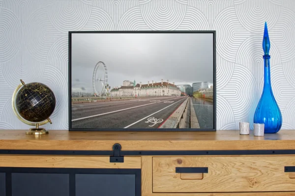 Je vous propose de sublimer le tirage avec un encadrement noir (en aluminium) de haute qualité, la caisse américaine. Un espace sépare le tirage du cadre pour un effet « flottant ». Cet encadrement vient ajouter environ 5 cm en largeur et 5 cm en hauteur au format total du tirage.