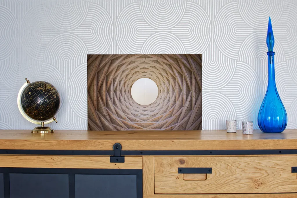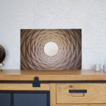 Un profil de suspension (ou châssis rentrant) en aluminium est proposé avec les tirages sur alu-dibond. Il donnera l’impression que la photo « flotte » sur le mur, ce profil fait entre 1,7 et 2 cm d’épaisseur (selon format du tirage). Il est positionné à l’arrière, à 10 cm des bords.
