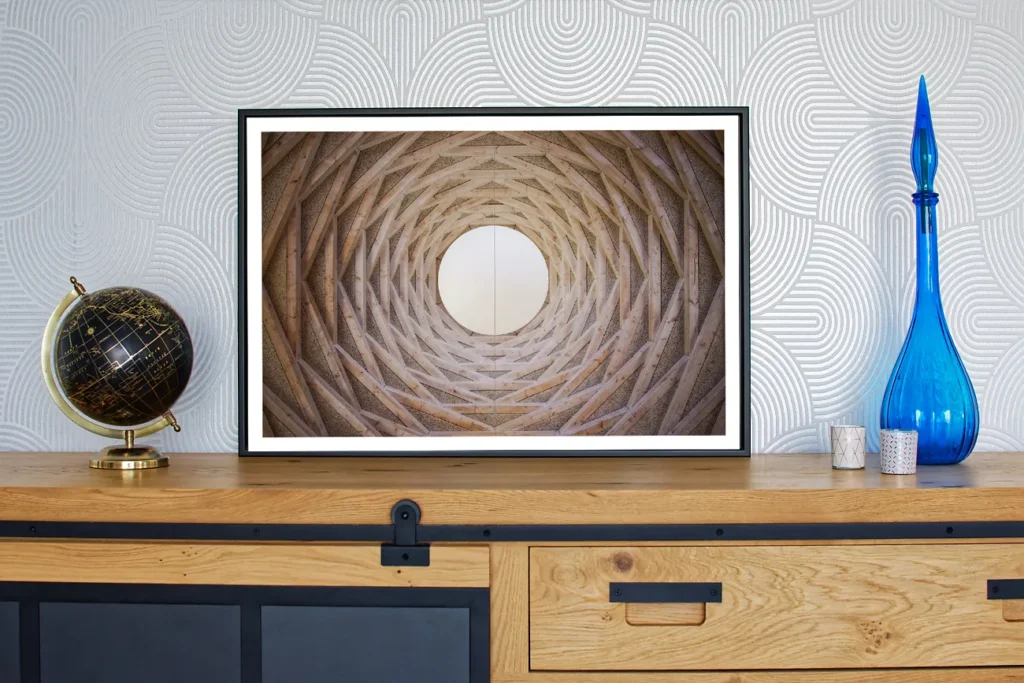 Je vous propose de sublimer le tirage avec un encadrement noir (en aluminium) de haute qualité, la caisse américaine. Un espace sépare le tirage du cadre pour un effet « flottant ». Cet encadrement vient ajouter environ 5 cm en largeur et 5 cm en hauteur au format total du tirage.