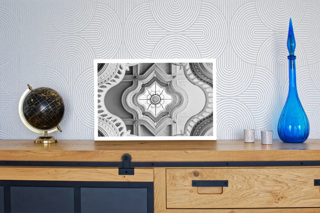 C’est un tirage effectué sur un papier d’art de 325 g/m². Le FineArt Hahnemühle Baryta a une grande netteté, une grande profondeur des noirs et des couleurs ainsi qu’un rendu brillant. Il possède une surface finement texturée.