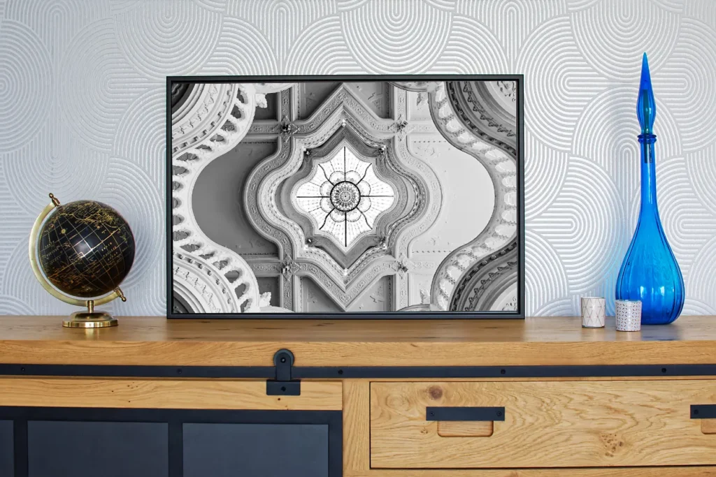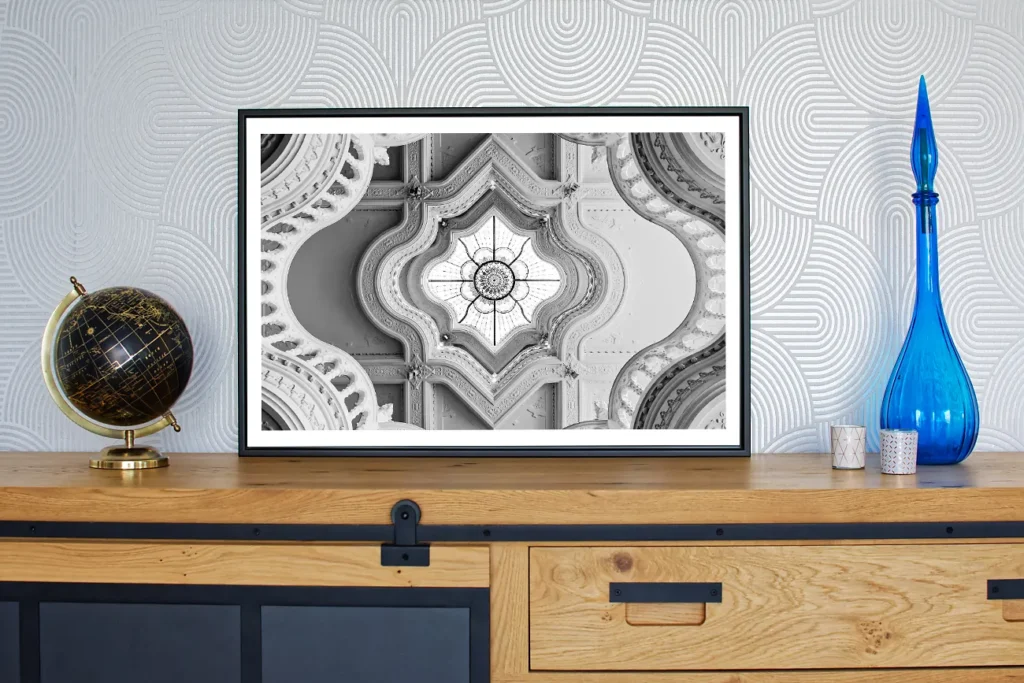 Je vous propose de sublimer le tirage avec un encadrement noir (en aluminium) de haute qualité, la caisse américaine. Un espace sépare le tirage du cadre pour un effet « flottant ». Cet encadrement vient ajouter environ 5 cm en largeur et 5 cm en hauteur au format total du tirage.